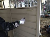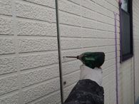 既存コーキングの撤去を行った後にサイディング反った部分をビスを使用し、出来る限り元の形に戻しました。
